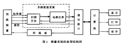 熱電偶、熱電阻自動測量系統(tǒng)的種類很多,它可以是一體化的,也可以是由若干部件構(gòu)成的。典型結(jié)構(gòu)如圖1所示。