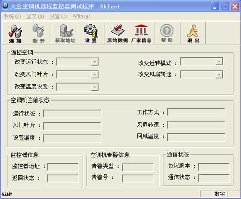 DJSI-1大金空調(diào)機(jī)監(jiān)控器是為實現(xiàn)大金空調(diào)機(jī)與計算機(jī)監(jiān)控功能而設(shè)計的專門化部件,該監(jiān)控器向用戶提供一個計算機(jī)監(jiān)控接口(RS232/RS485),通過該監(jiān)控器用戶可獲取空調(diào)機(jī)的數(shù)據(jù)控制空調(diào)機(jī)。通過建設(shè)空調(diào)機(jī)集中監(jiān)控系統(tǒng),用戶可對空調(diào)機(jī)進(jìn)行四遙(遙信、遙測、遙控、遙調(diào)),實現(xiàn)遠(yuǎn)程維護(hù)。本軟件的主要功能和主界面如下。