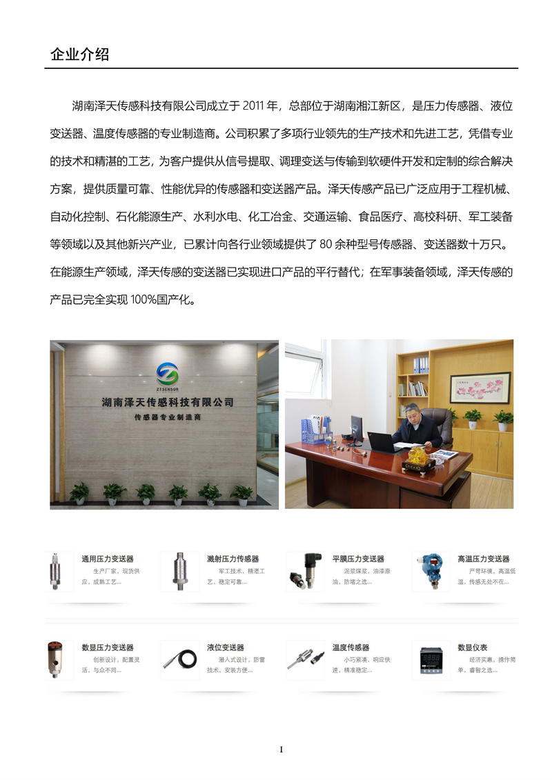 湖南澤天傳感--產(chǎn)品宣傳手冊(cè)202401版